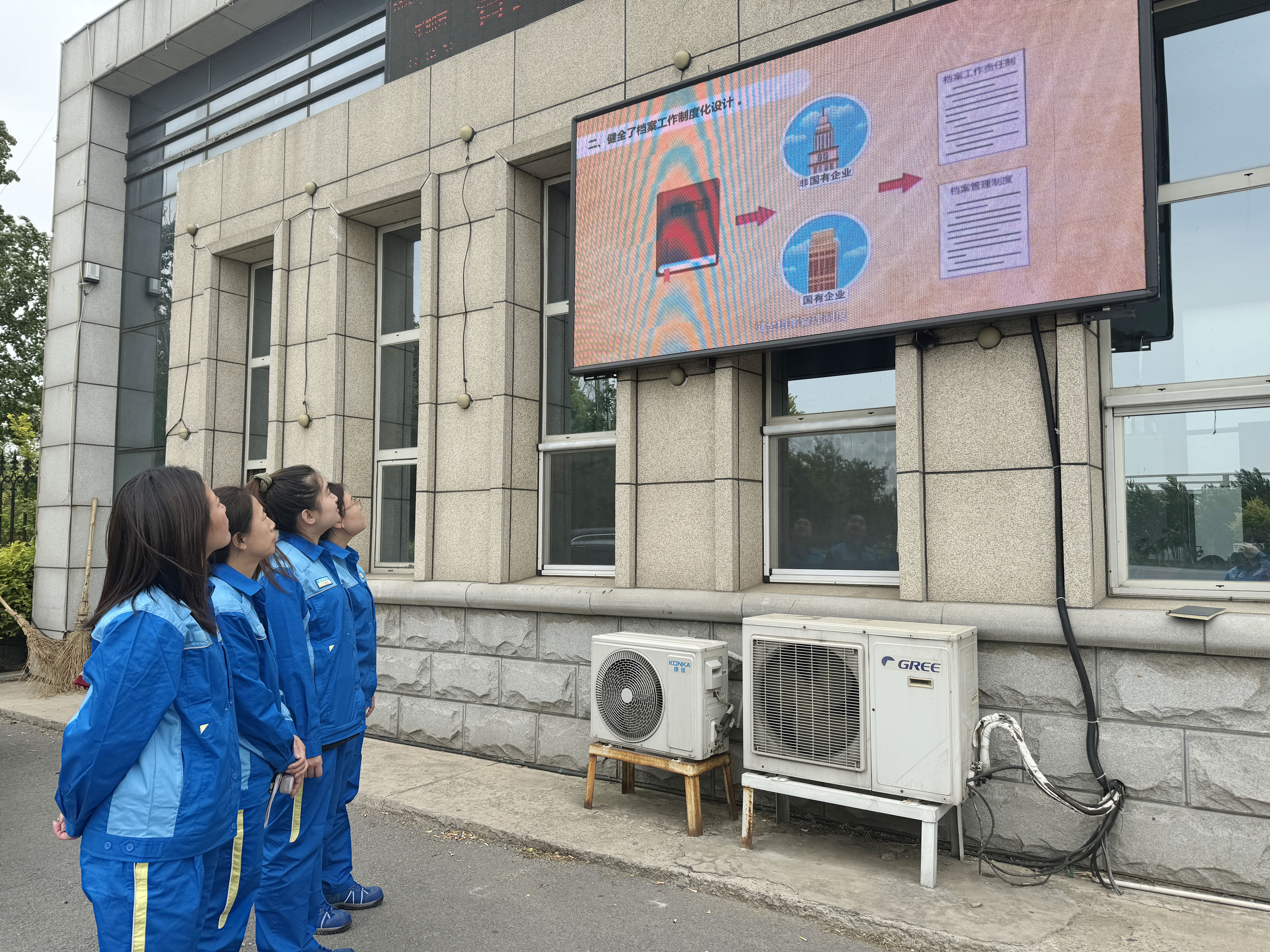 在公司職工食堂、門口等大屏幕宣傳播放《中華人民共和國檔案法》等相關(guān)講解視頻,鼓勵(lì)員工在休息時(shí)間學(xué)習(xí)檔案相關(guān)知識。